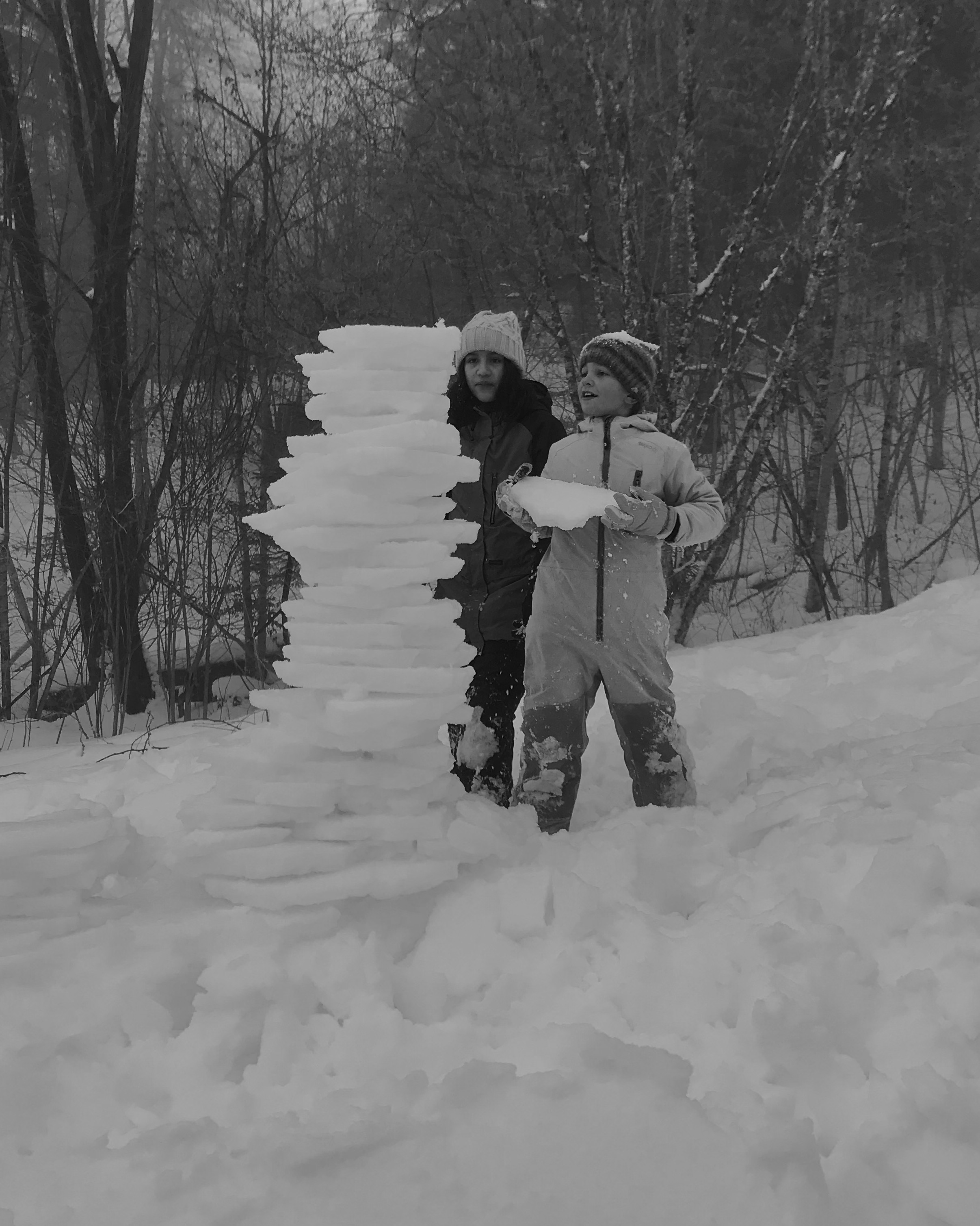 Gleich zu Beginn des neuen Jahres haben unsere Kinder im Wald entdeckt, dass der weiche Schnee von einer stabilen Eisschicht bedeckt ist. Rasch hatten sie eine Menge an Ideen, was damit gebaut werden kann. Mit Geschick und Zusammenarbeit entstanden hohe Türme, ein Torbogen und auch ein Eistisch samt Eisschüssel für die gemeinsame Jause. Ein paar gemütliche Sitzbänke waren schnell aus Schnee gebaut.