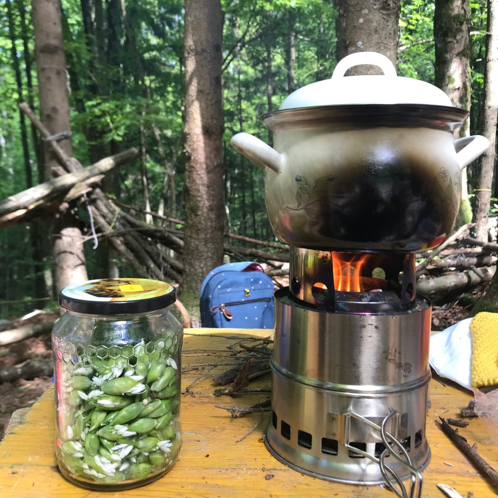 Begonnen hat alles mit Bärlauch: Als die Blätter ausgewachsen waren und der Bärlauch kurz vor der Blüte stand, haben wir Bärlauchknospen eingelegt. Das ist eine gute Möglichkeit, um die Knospen haltbar zu machen und zugleich ein Ersatz für Kapern.
