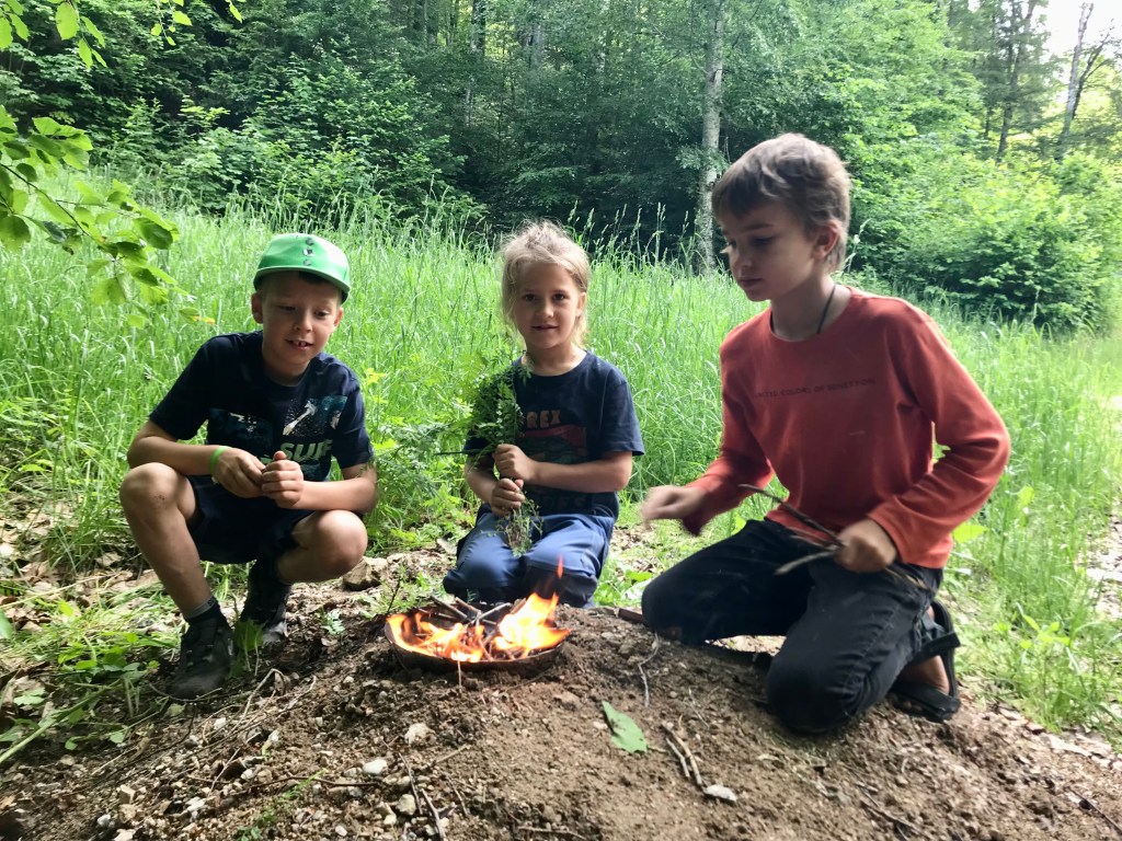 NEU ist heuer, dass unsere Kinder (fast) jedes Mal die Gelegenheit haben, sich im Feuermachen zu üben. Warum nur „fast“? Nun, oft ist so viel im Wald zu tun und zu erleben, dass selbst für dieses spannende Thema keine Zeit mehr bleibt…