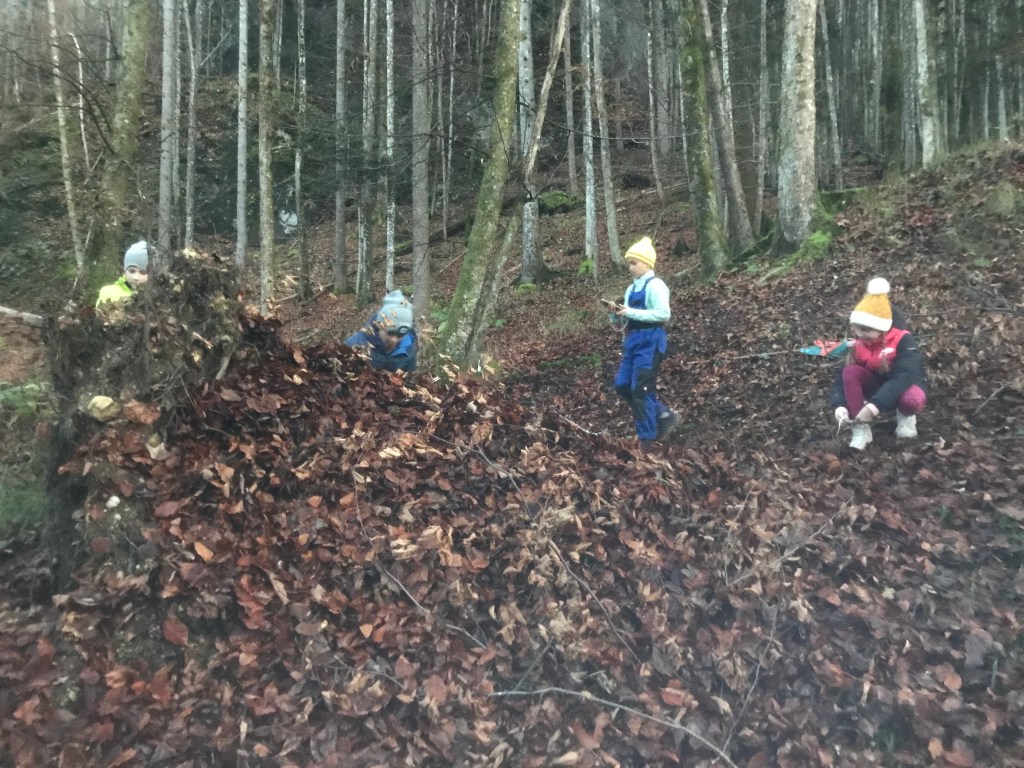 Alle die sich getraut haben, sind anschließend zum Probeliegen in die Laubhütte gekrabbelt – also alle eben – all´ unsere Bären sind eben bärenstark!
