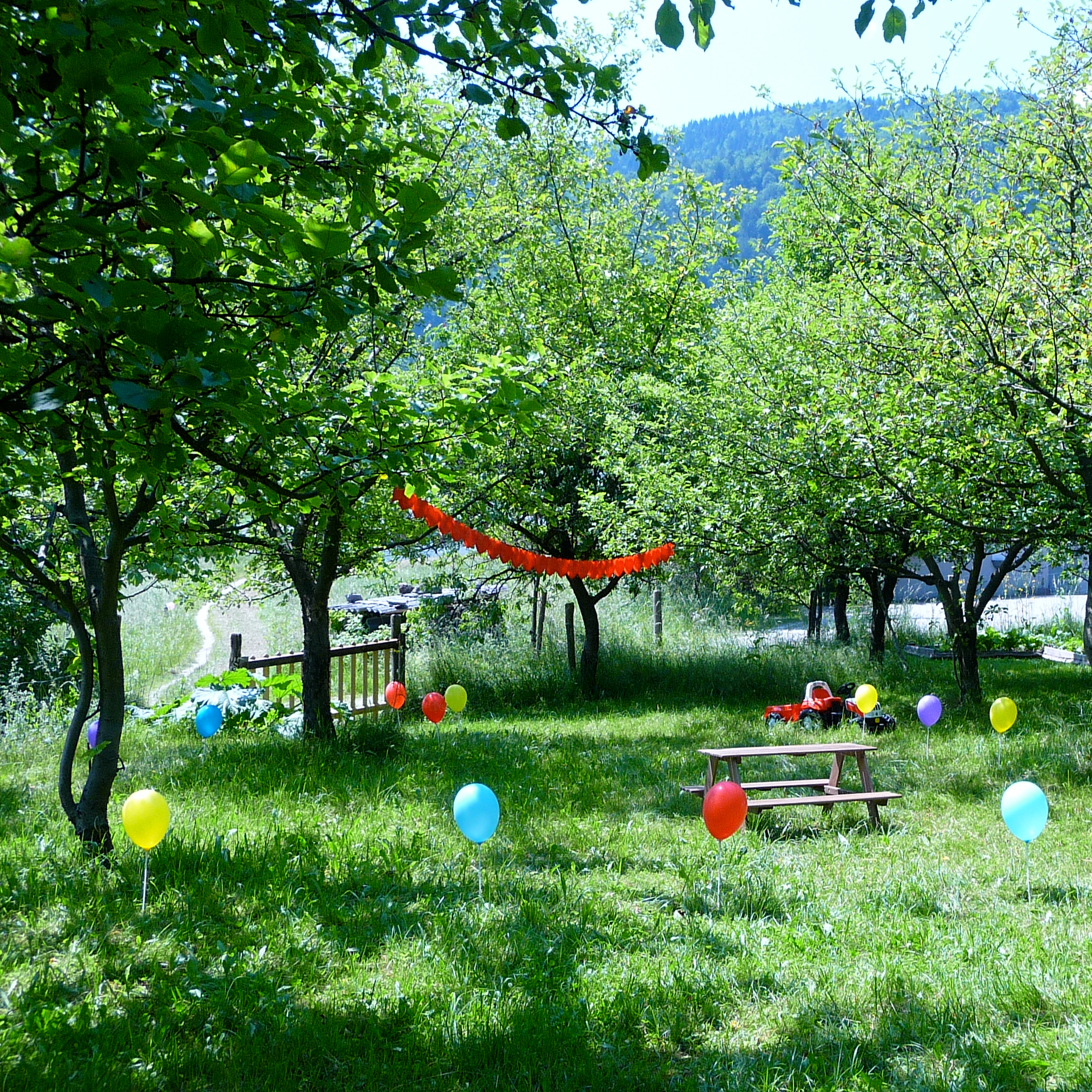 Beim Spazierengehen fiel uns immer wieder ein Garten auf, der etwas Paradiesisches an sich hat: Obstbäume, verwinkelte Kletterbäume und Sonnenstrahlen küssen den blumenübersäten Boden. Als sich zwei Jahre später, im Jahr 2014, herausstellte, wem der Garten eigentlich gehört, war es nur mehr ein freundlicher Schritt – Seither dürfen wir uns auch im Obstgarten wohlfühlen und ihn pflegen.